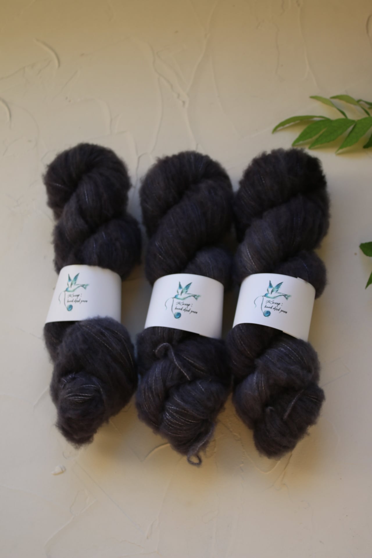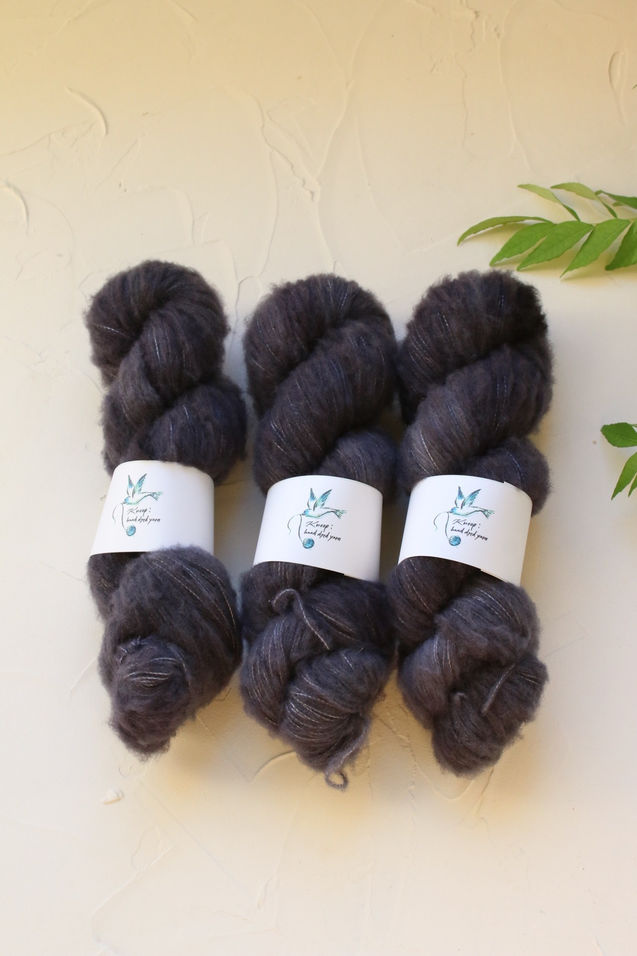 バンブーの芯に19.5ミクロンのメリノを吹きつけたフワフワな糸です。