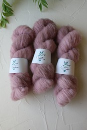 バンブーの芯に19.5ミクロンのメリノを吹きつけたフワフワな糸です。