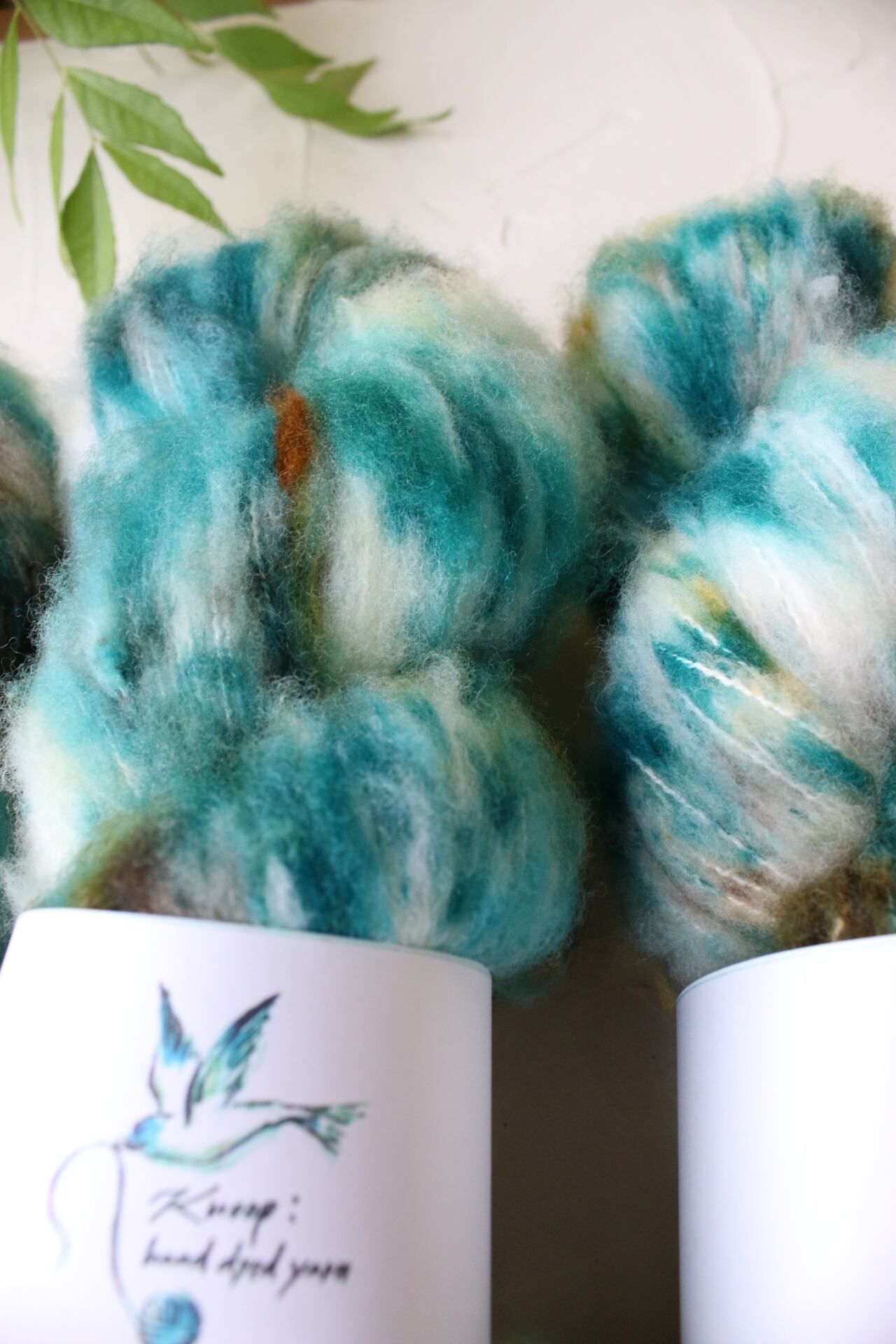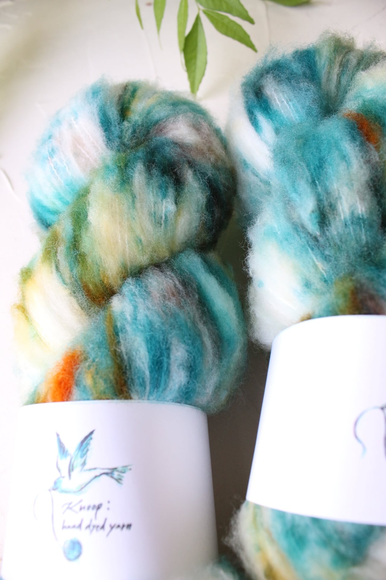 バンブーの芯に19.5ミクロンのメリノを吹きつけたフワフワな糸です。
