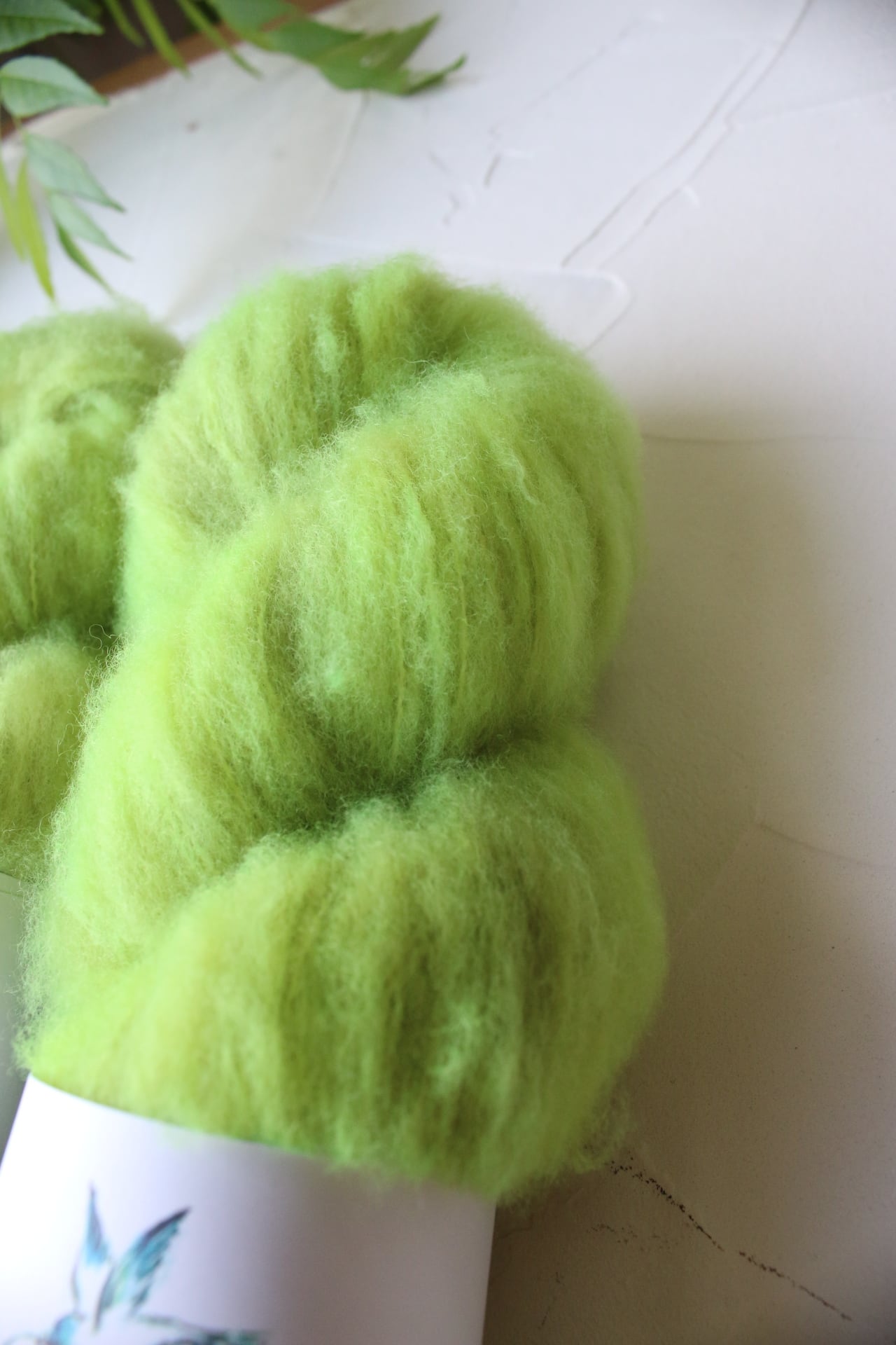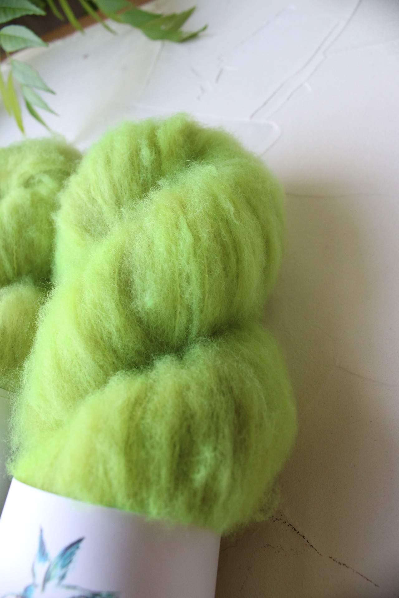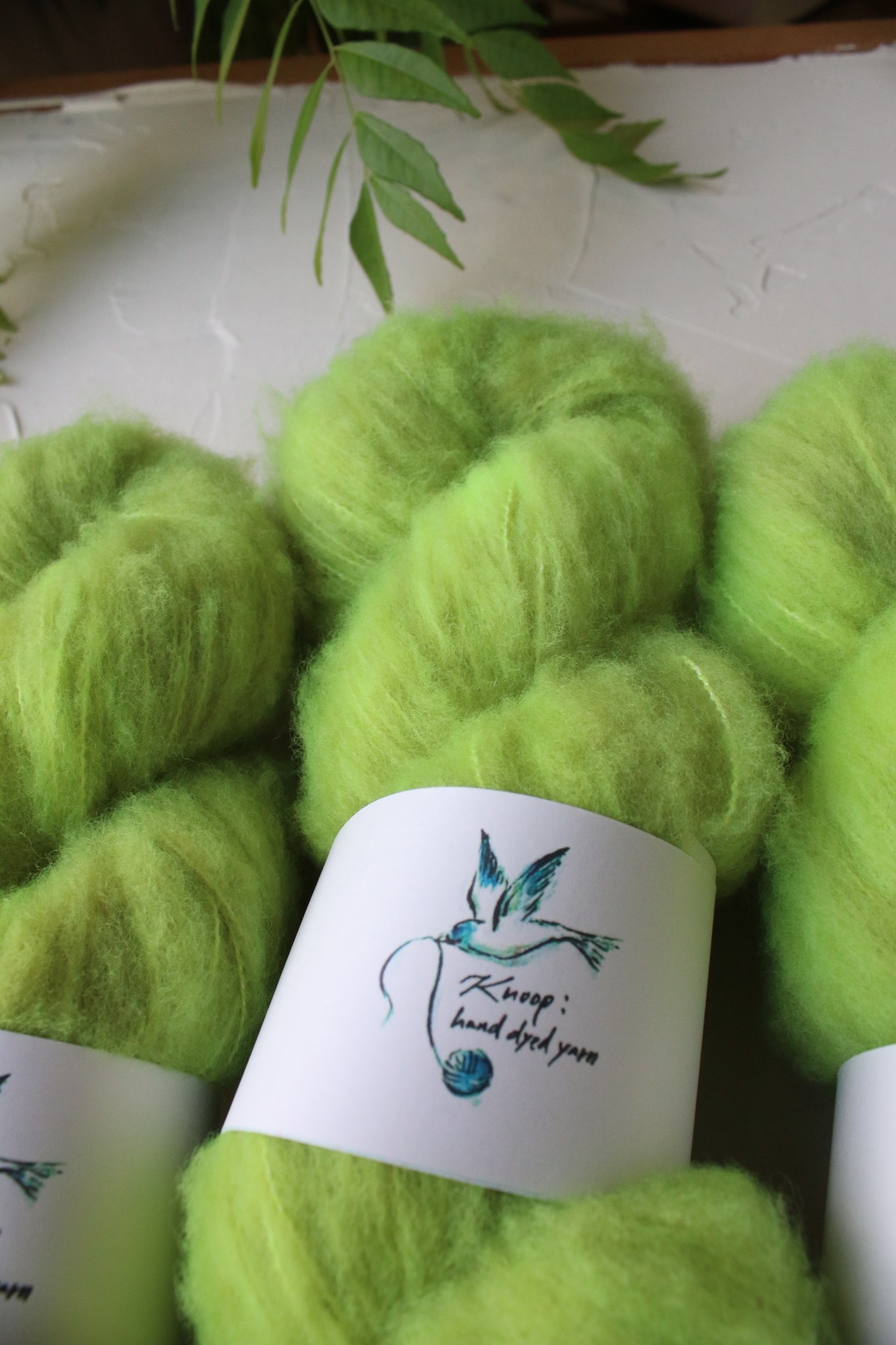 バンブーの芯に19.5ミクロンのメリノを吹きつけたフワフワな糸です。