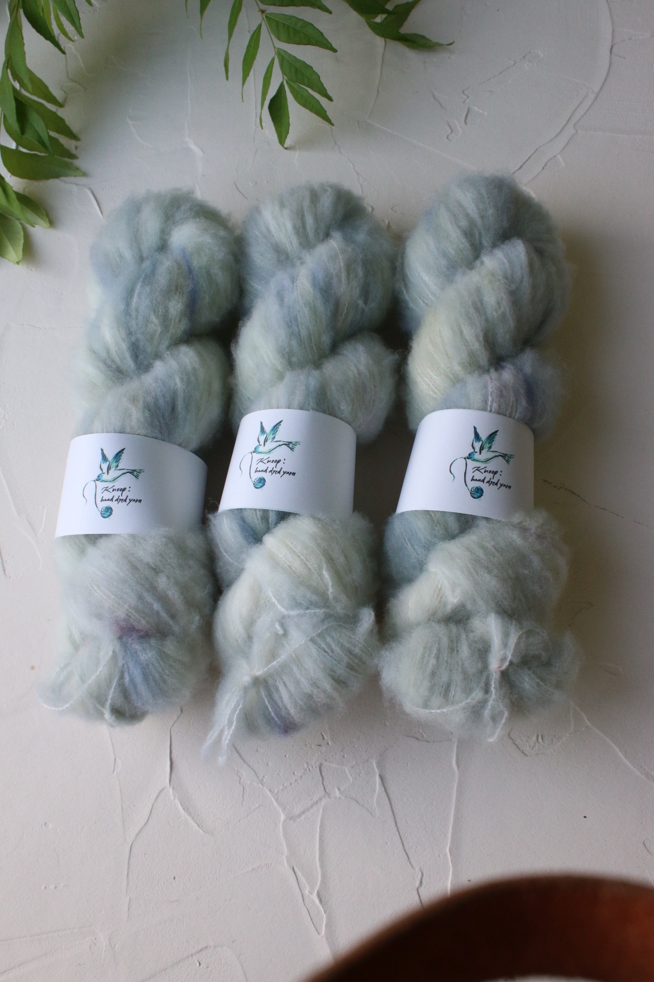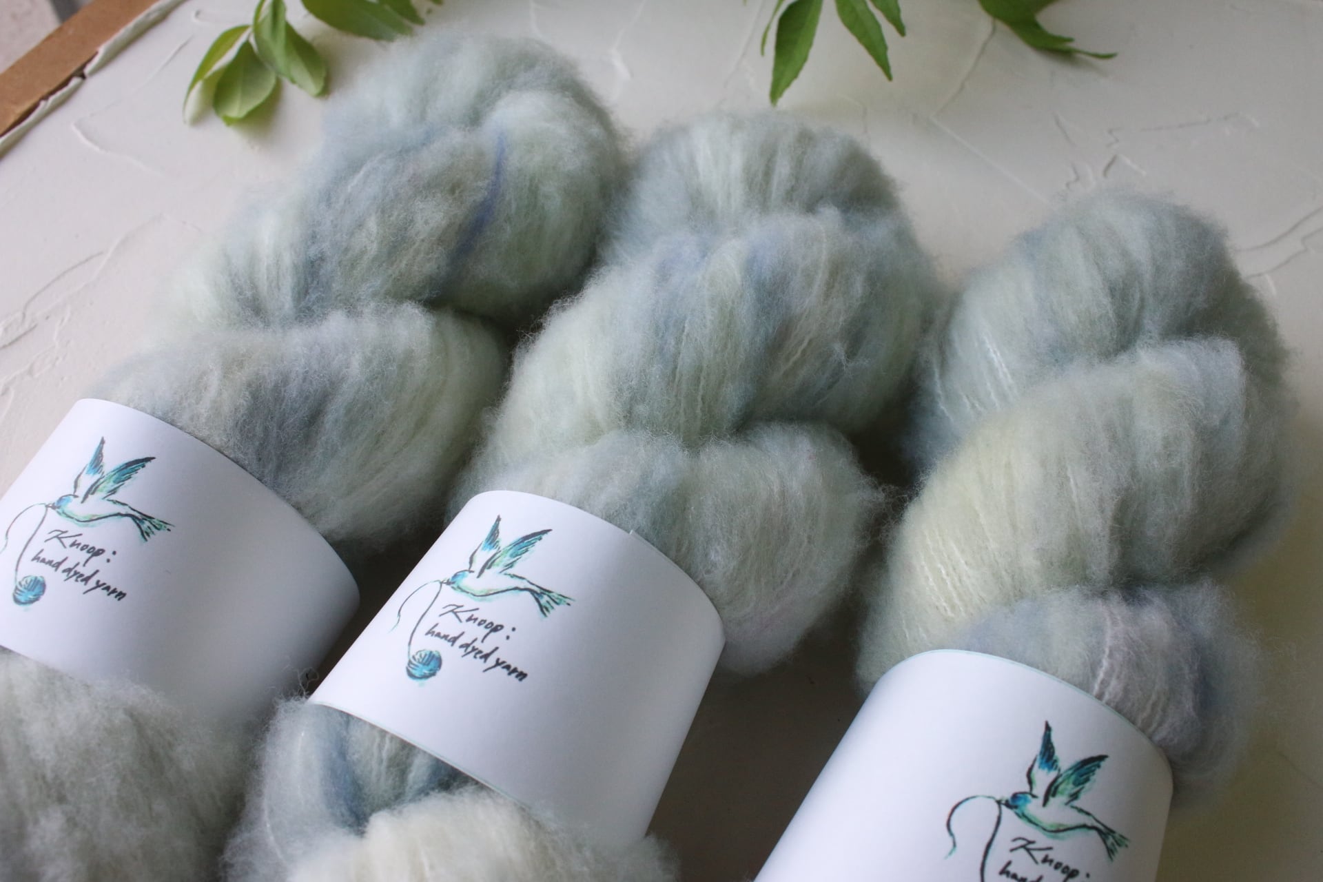 バンブーの芯に19.5ミクロンのメリノを吹きつけたフワフワな糸です。