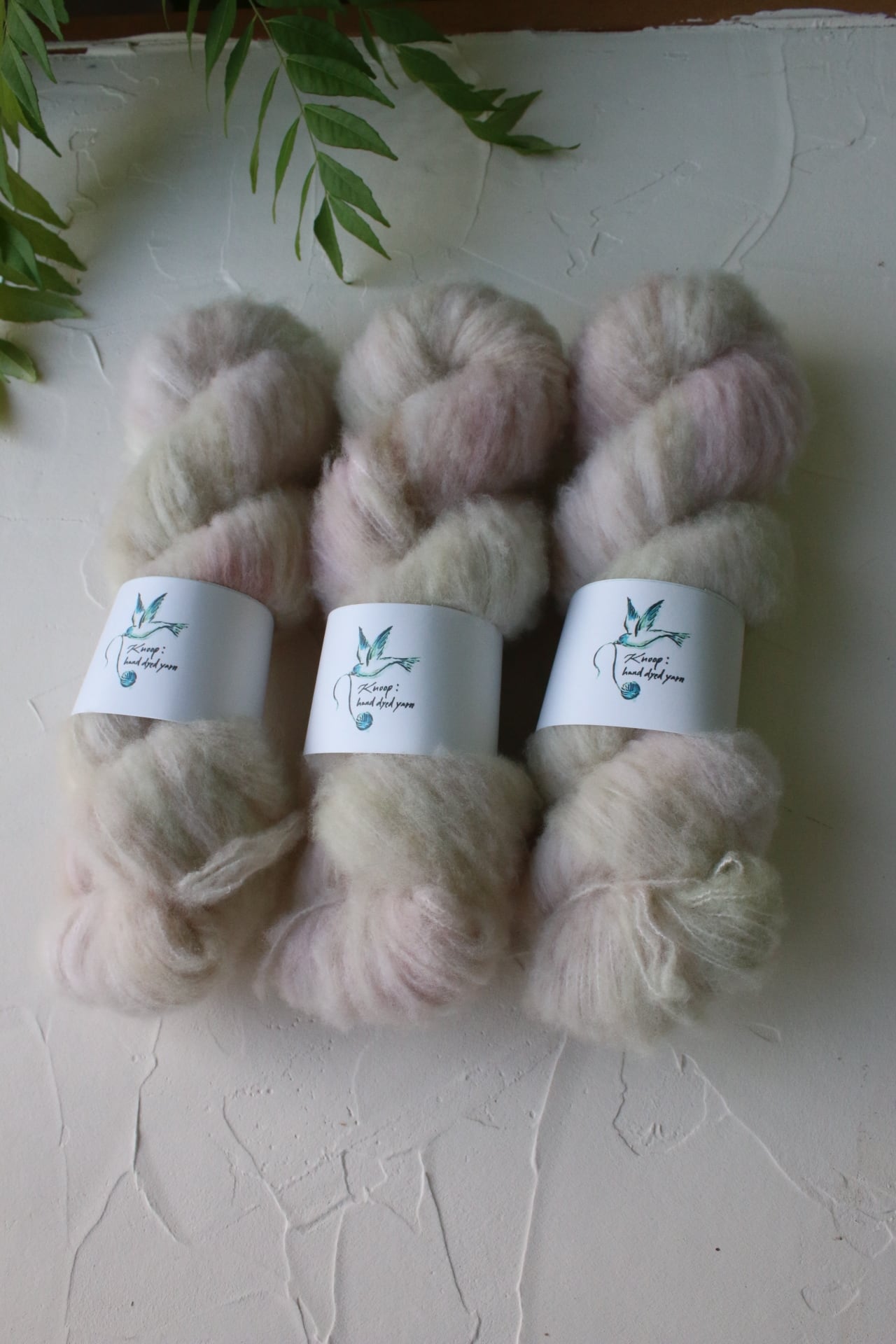 バンブーの芯に19.5ミクロンのメリノを吹きつけたフワフワな糸です。