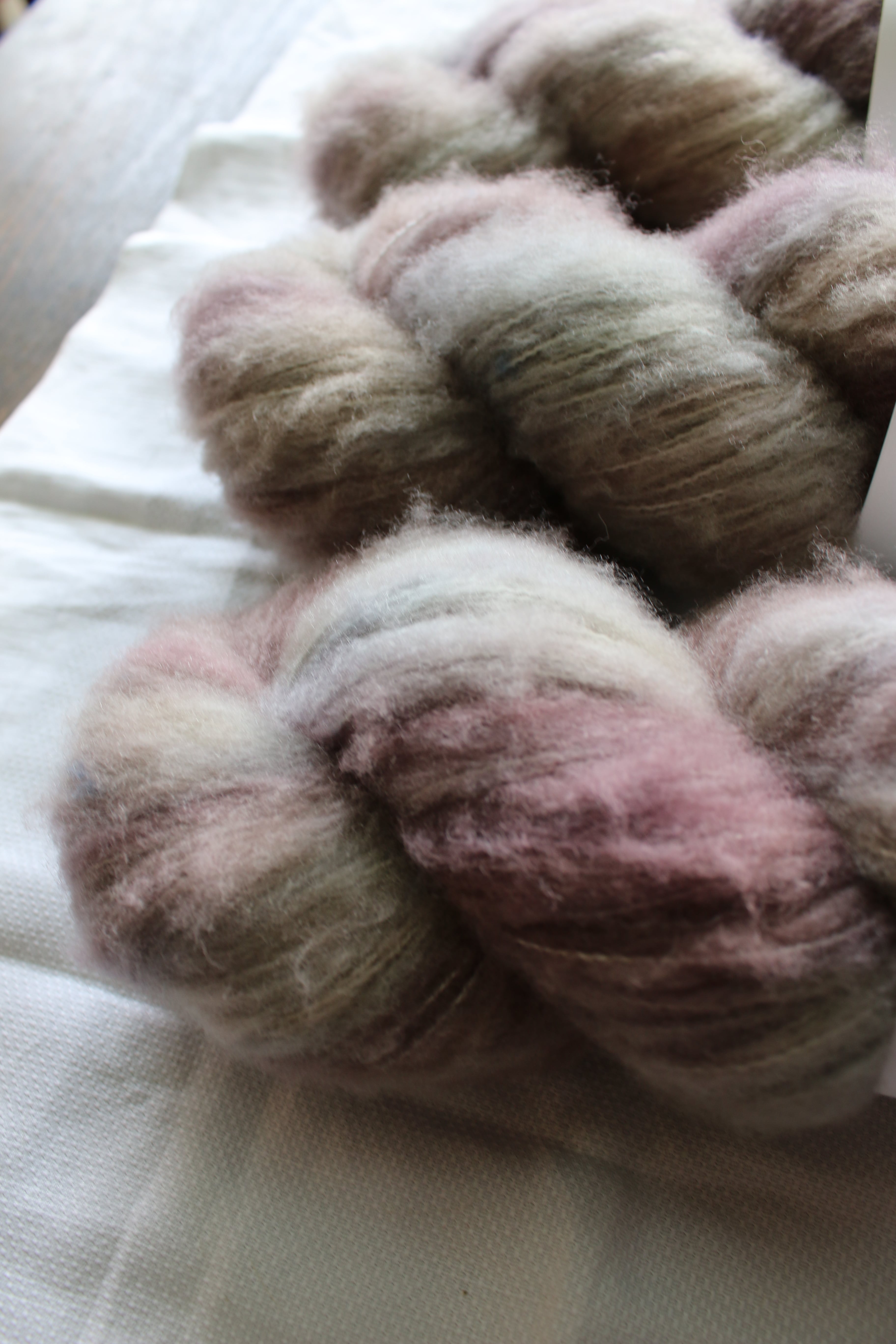 バンブーの芯に19.5ミクロンのメリノを吹きつけたフワフワな糸です。