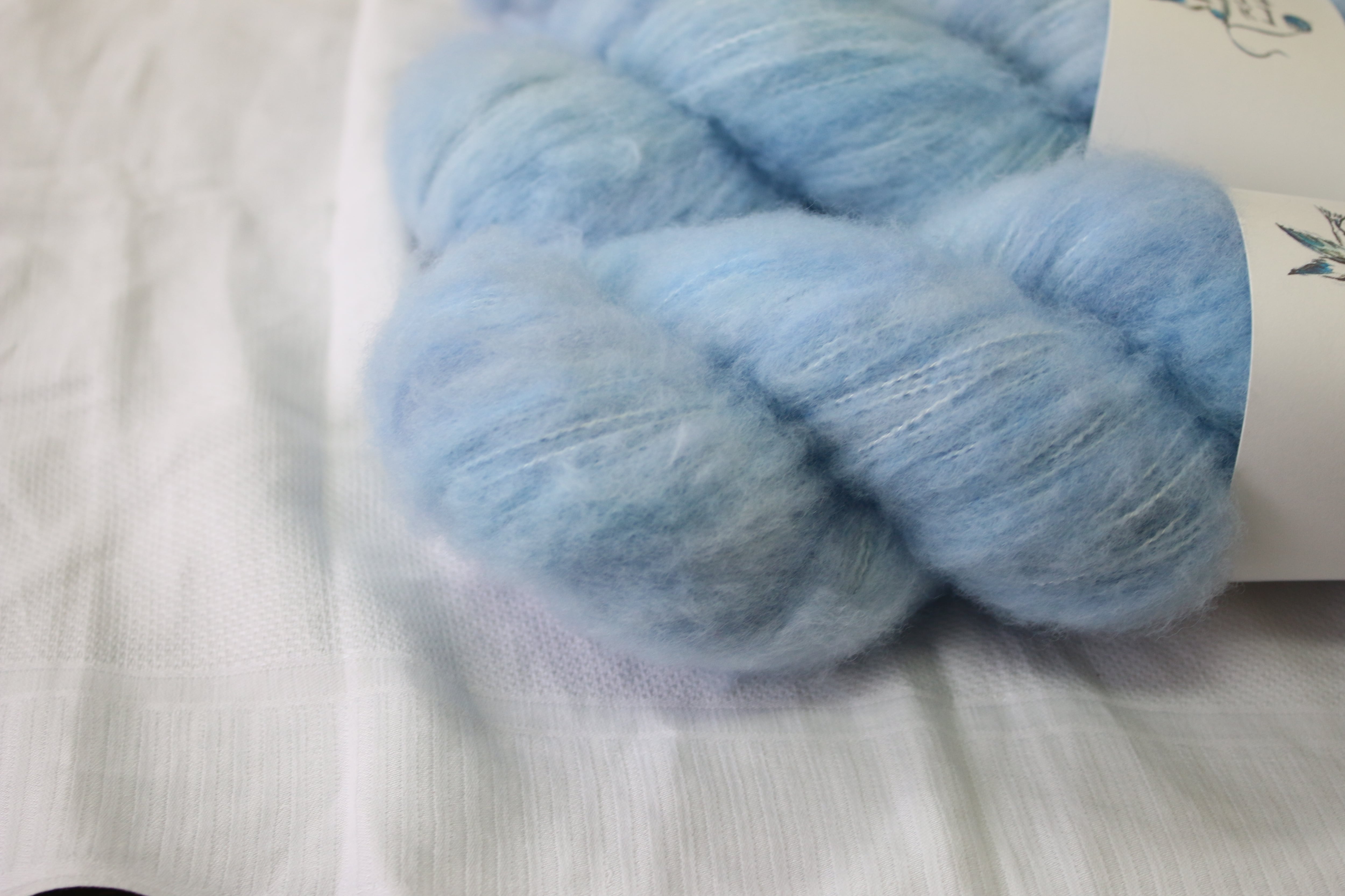 バンブーの芯に19.5ミクロンのメリノを吹きつけたフワフワな糸です。